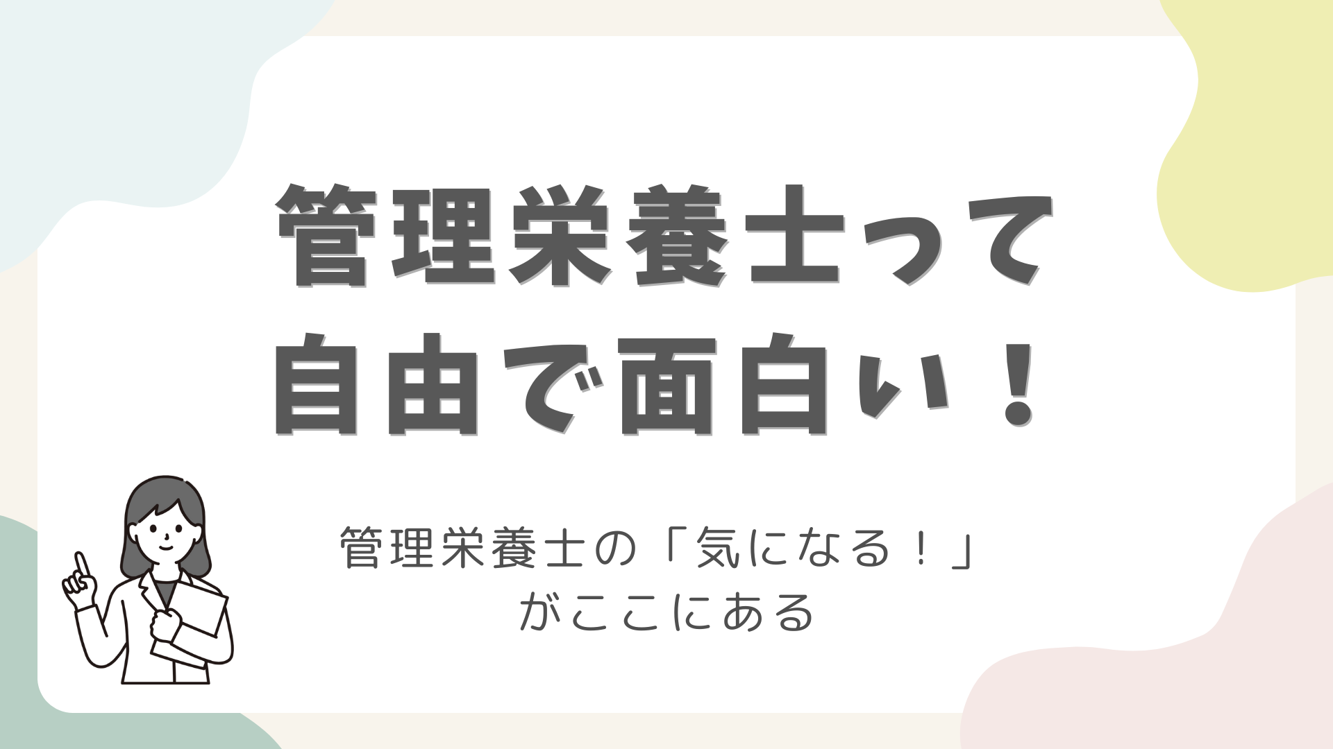 はじめまして。このサイトは「管理栄養士って自由で面白い」を合言葉に、管理栄養士としての働き方や、就職活動、国家試験の勉強などについて、まとめているサイトです。